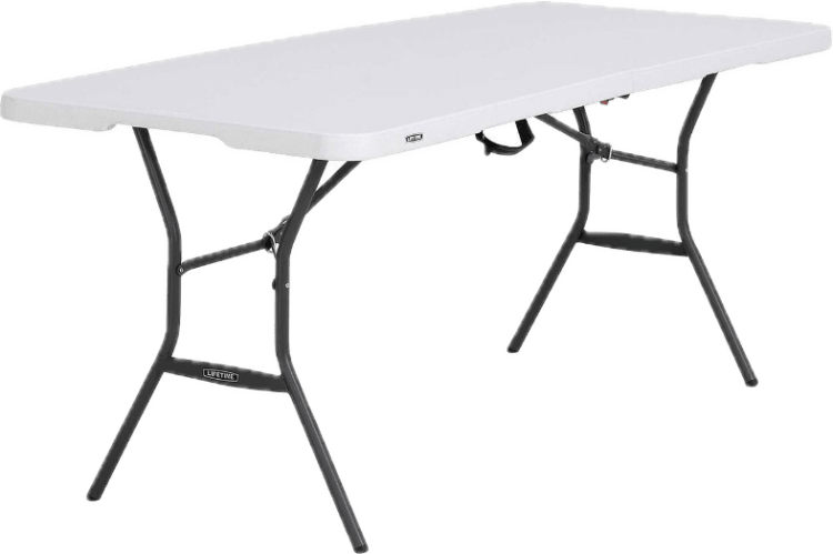 A 6-foot white folding table that’s sturdy yet lightweight, seats 6–8, and sets up in seconds. Folds flat with locking legs for easy transport, works indoors or outdoors, and wipes clean for quick turnaround.