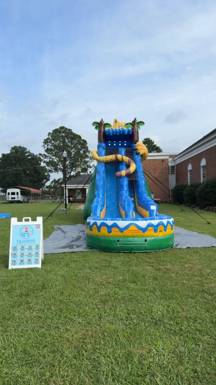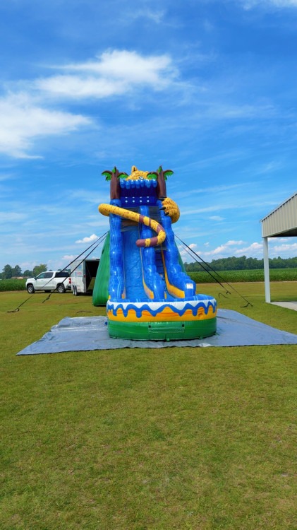 Dive into the thrill of summer with the 19' Safari Splash, a towering inflatable that promises to turn any backyard into a splash-filled paradise. This rental features a sleek, jaguar-themed design that will captivate the adventurous spirit of all ages. Imagine racing down its slick surface, only to be greeted by a refreshing splash pool at the bottom - the perfect escape from the heat. Ideal for birthday parties, family reunions, or any outdoor gathering, this water slide ensures a day filled with laughter, excitement, and unforgettable memories. So, gear up for a wild ride down the 19' Safari Splash, where fun meets the sun in the most exhilarating way possible.